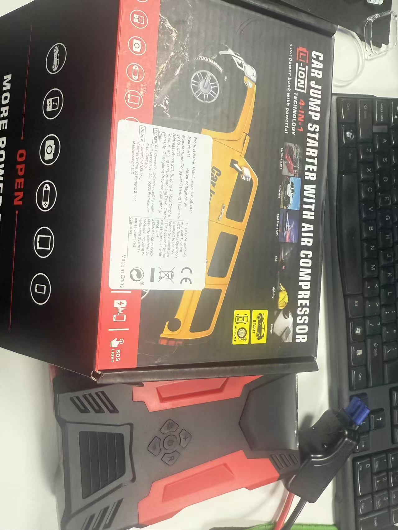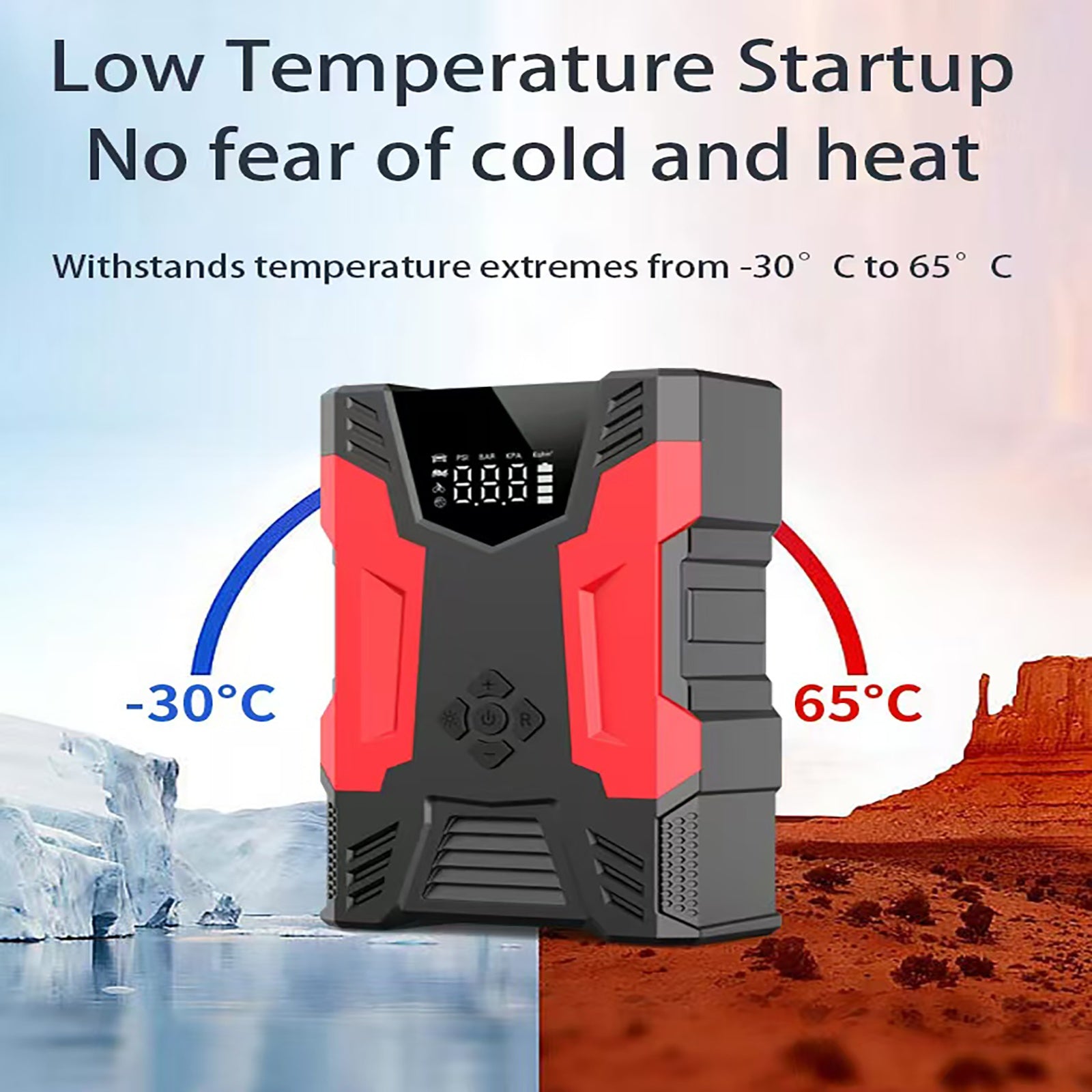 4in1 Multi-functional Car Emergency Jump Starter 12V High-Power Automotive Battery Emergency Jump Starter With Air Compressor Air Pump, Black And Red