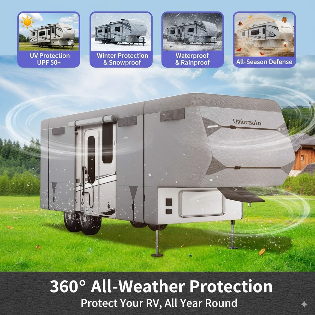 All-Weather Fifth Wheel Trailer Cover,Breathable RV Storage Cover - Easy Access & Ventilation Design