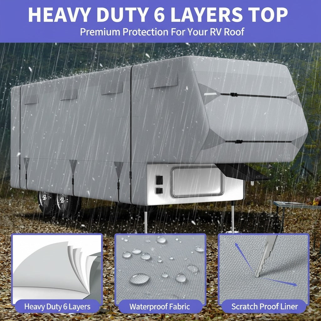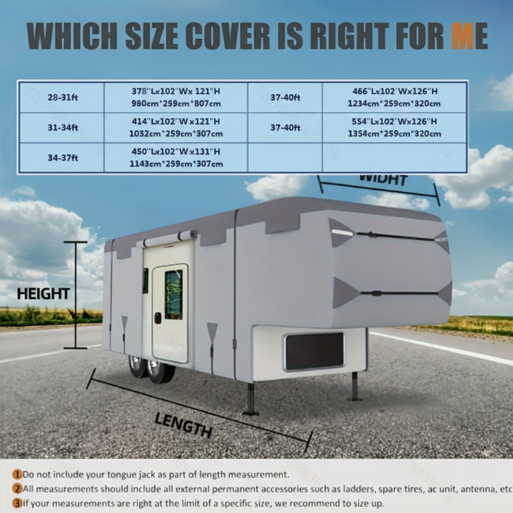 •All-Season Weather Defense: Engineered to withstand extreme conditions, our cover protect from rain, windproof, and snowproof. Its breathable material prevents moisture buildup, keeping your RV dry and protected year-round.